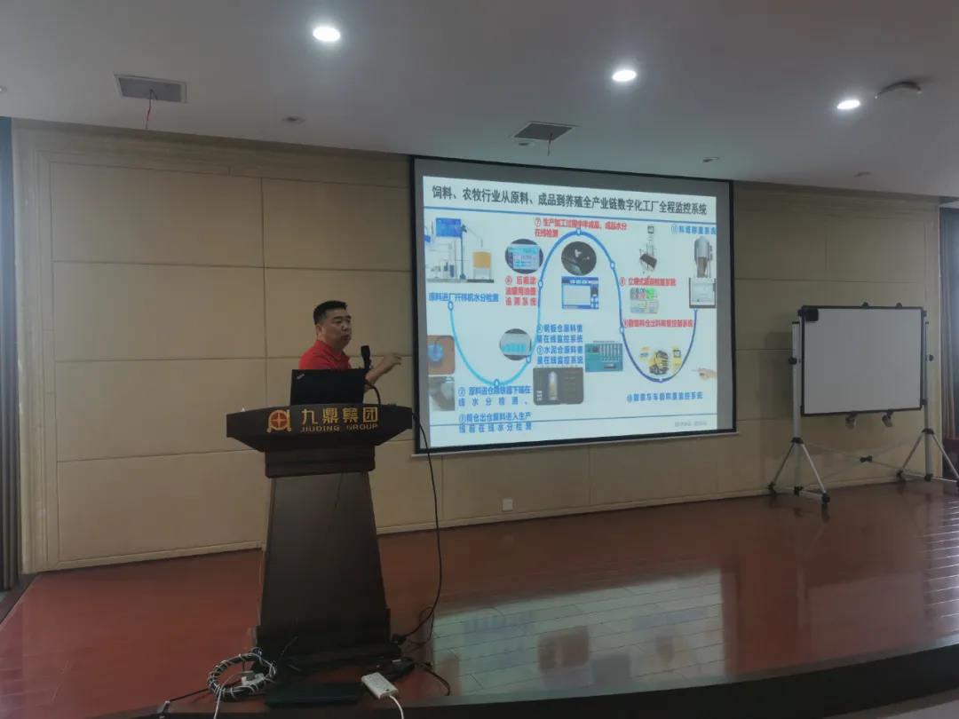 湖南九鼎農(nóng)牧基地廠長(zhǎng)謝爭(zhēng)光在會(huì)場(chǎng)進(jìn)行新工藝/新技術(shù)/新設(shè)備分享與答疑