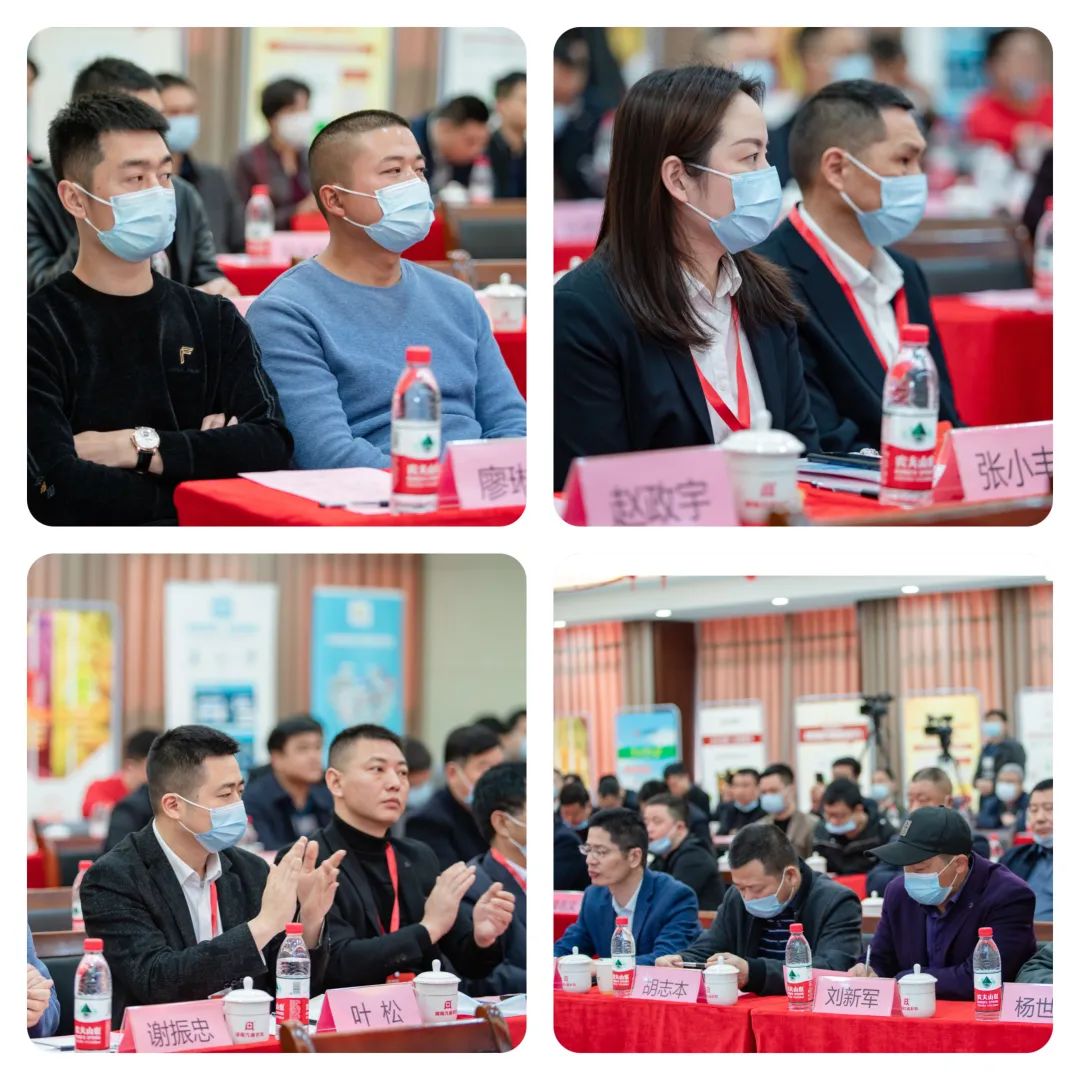 九鼎集團運營中心總經理王衛忠、研發中心總經理江書忠、產品中心總經理羅佳捷、深圳潤農科技市場部經理許志鵬分別就如何從飼料生產工藝,技術研發,產品應用以及智能飼喂等方面為規模豬場降本增效作了相關主題溝通。